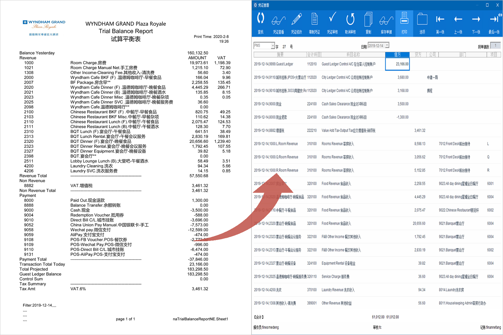 前台和餐饮收入凭证、采购凭证、成本凭证、工资凭证、付款凭证等90%凭证全自动化生成,并细化到部门和市场细分,无需人工干预和录入,省时省力,精准可靠;