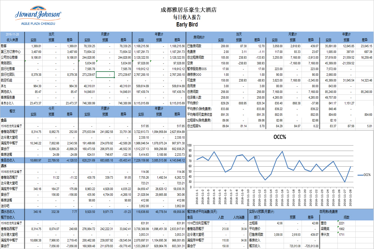 前台房数、出租率、市场细分及餐饮人数等统计类凭证全自动化生成;国内财务系统通常不接受;