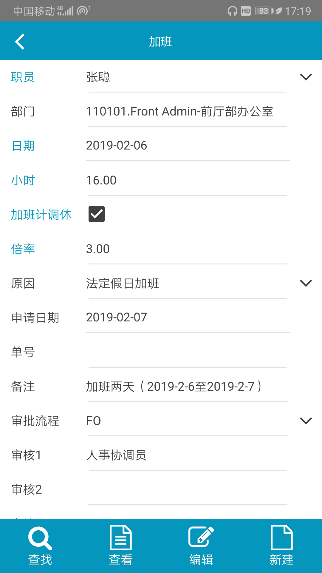 加班、请假、人事变动移动审批;